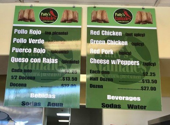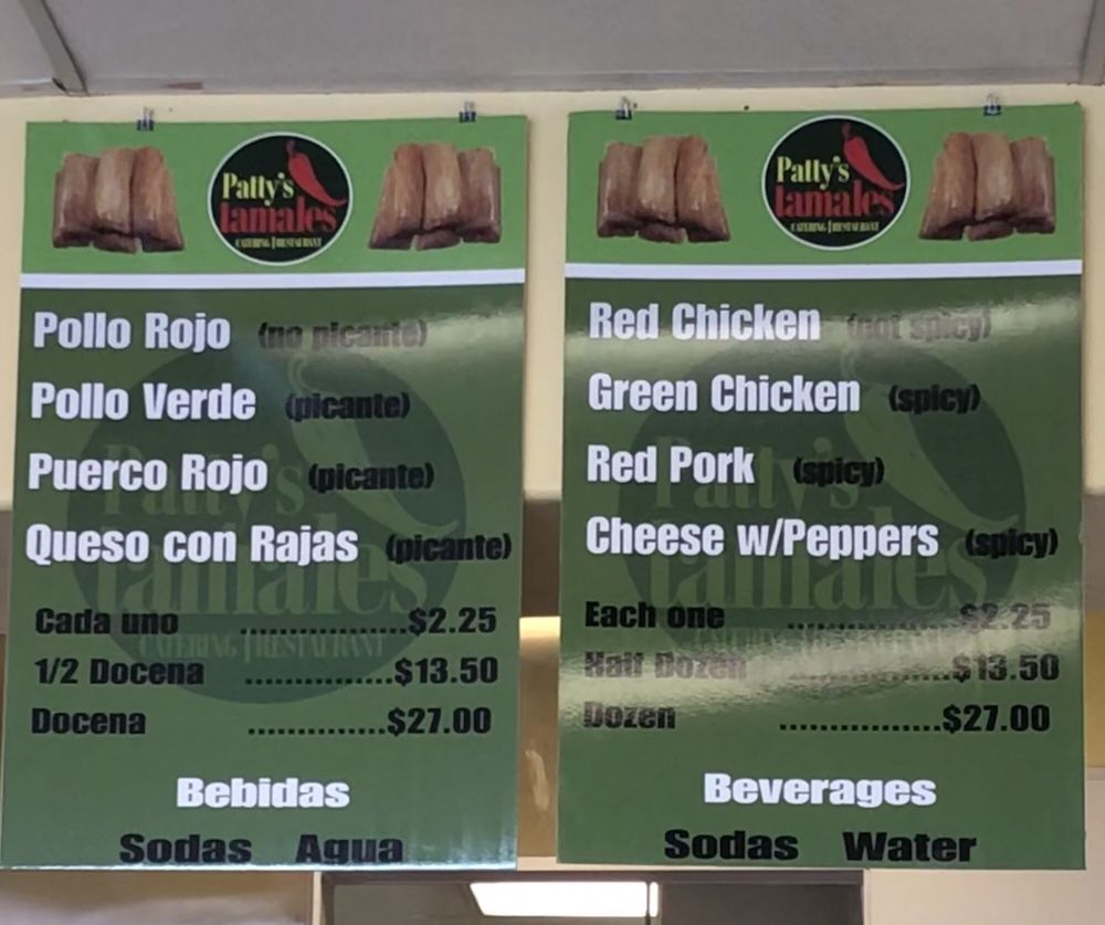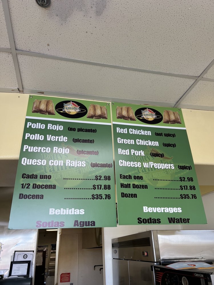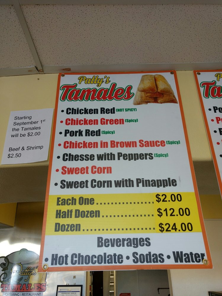 Introducing the menu at Patty's Tamales, a tamale-focused eatery located in Las Vegas, NV. Known for their variety of tamales, some customer favorites include the Chicken Green Spicy Tamales, Cheese with Peppers Tamales, and Pork Spicy Tamales. Reviews highlight the flavorful fillings and generous portions of each tamale. Customers appreciate the friendly service and quick turnaround time. While some found the pork and chicken tamales a bit dry, the cheese tamale stands out for its moistness and flavor. Overall, Patty's Tamales has earned a reputation for delicious, authentic tamales made with care and love. If you're a tamale enthusiast looking for a new spot, give Patty's Tamales a try for a satisfying and flavorful experience.